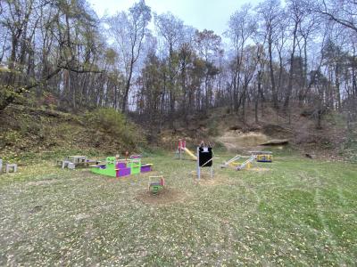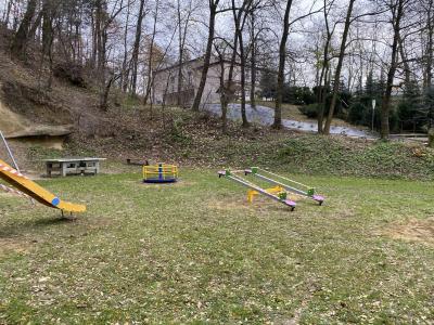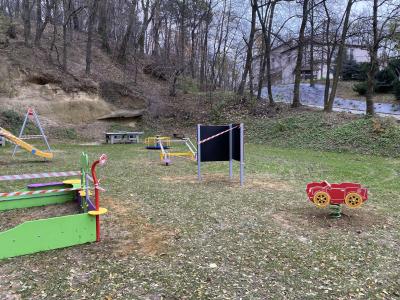 Działka rekreacyjna znajdująca się na malowniczym wzniesieniu, tuż przy lesie, wyposażona już wcześniej m.in. w plenerowe stoły do gry w ping – ponga oraz szachy, a także urządzenia do ćwiczeń gimnastycznych, zyskała teraz: huśtawkę „bocianie gniazdo”, wielofunkcyjną zjeżdżalnię, karuzelę, piaskownicę edukacyjną, tablicę, podwójny bujak, huśtawki ważki.