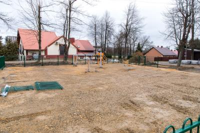 Duże roboty są prowadzone również w otoczeniu boiska LKS Strażak Kokotów. Powstanie tam m.in. plac zabaw (w sąsiedztwie plenerowej siłowni).